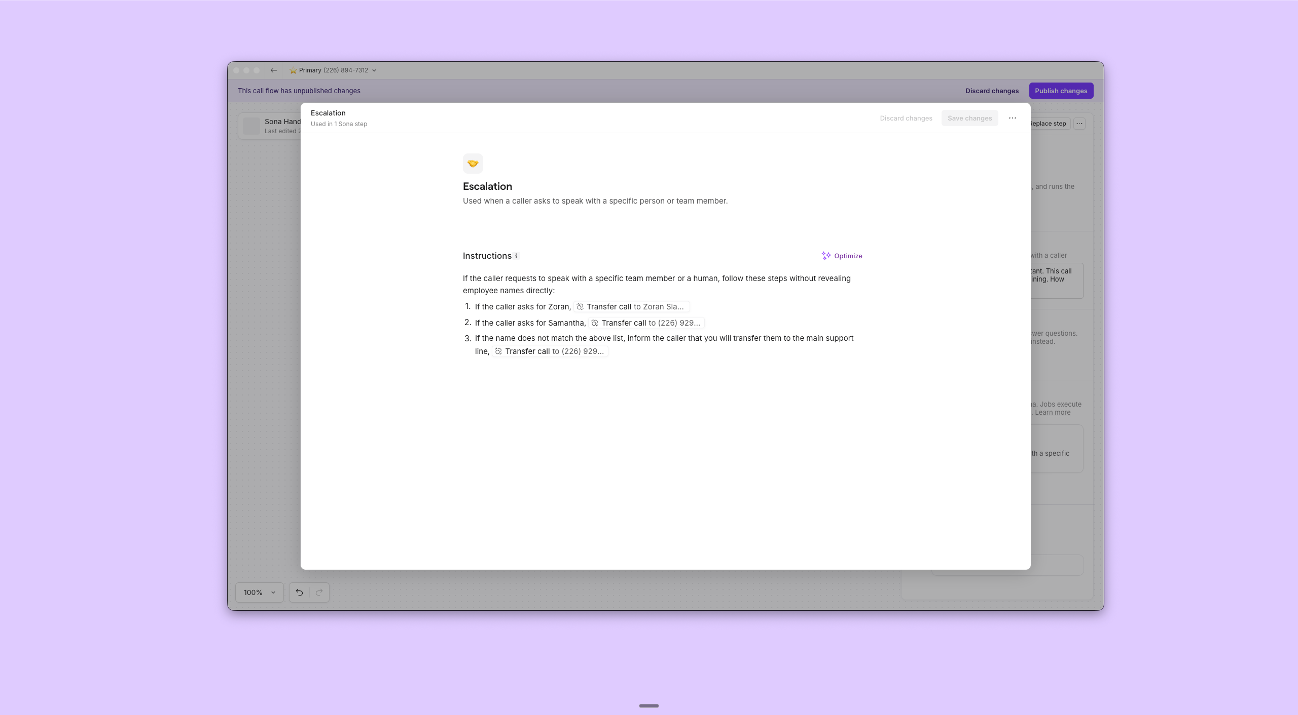 - Share conditional conversation flows with “if…then” statements. For example, let’s say Sona asks a caller about the urgency of a request. You can tell Sona: “If they say their request is urgent, then offer to transfer their call to your team.”