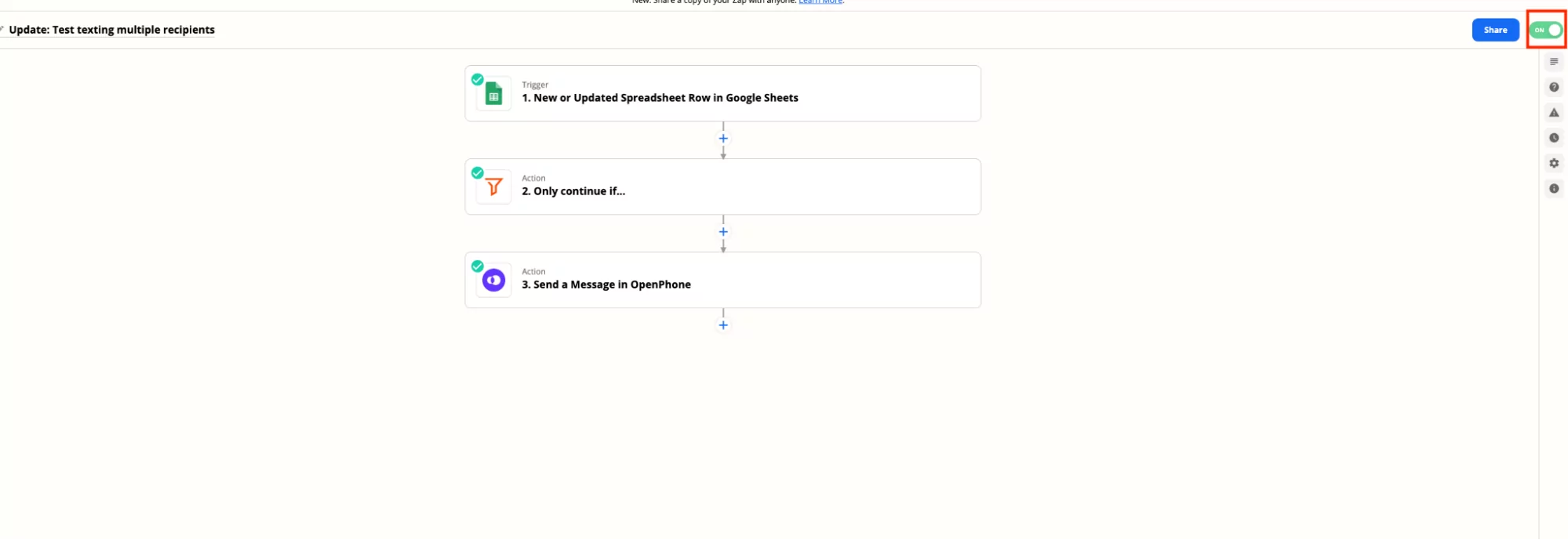 - Then, turn on the Zap by clicking the toggle button in the upper corner right of the screen.